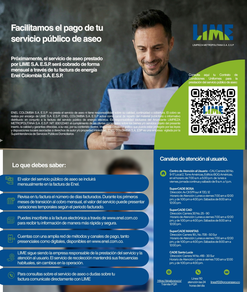 LIME S.A. E.S.P., Informa a los usuarios, que únicamente para las festividades de Navidad y Fin de Año...