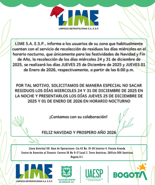 LIME S.A. E.S.P., Informa a los usuarios, que únicamente para las festividades de Navidad y Fin de Año...
